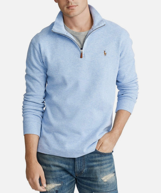 Polo Ralph Lauren 男款經典 Estate-Rib 四分之一拉鍊套頭毛衣 天空藍 美國正品代購直運